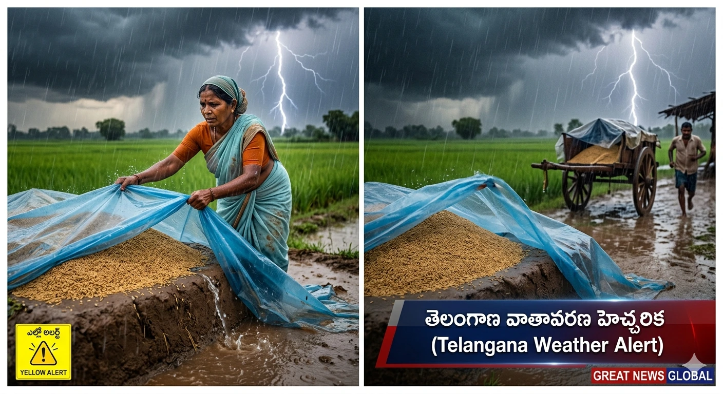 Telangana Weather Alert : తెలంగాణ రాష్ట్రంలో వాతావరణం ఒక్కసారిగా మారిపోయింది. గత కొద్దిరోజులుగా భానుడి భగభగలతో అల్లాడుతున్న ప్రజలకు ఉపశమనం కలిగిస్తూనే, మరోవైపు ఉరుములు, మెరుపులతో కూడిన వర్షాలు ముంచుకొస్తున్నాయి. భారత వాతావరణ శాఖ (IMD) తాజా బులిటెన్ ప్రకారం, తెలంగాణలోని 14 జిల్లాలకు ‘ఎల్లో అలర్ట్’ (Yellow Alert) జారీ చేసింది. ప్రభావితమయ్యే జిల్లాలు ఇవే: సోమవారం (మార్చి 16) నుండి రానున్న ఐదు రోజుల పాటు రాష్ట్రవ్యాప్తంగా పలు చోట్ల వర్షాలు కురిసే … Read more