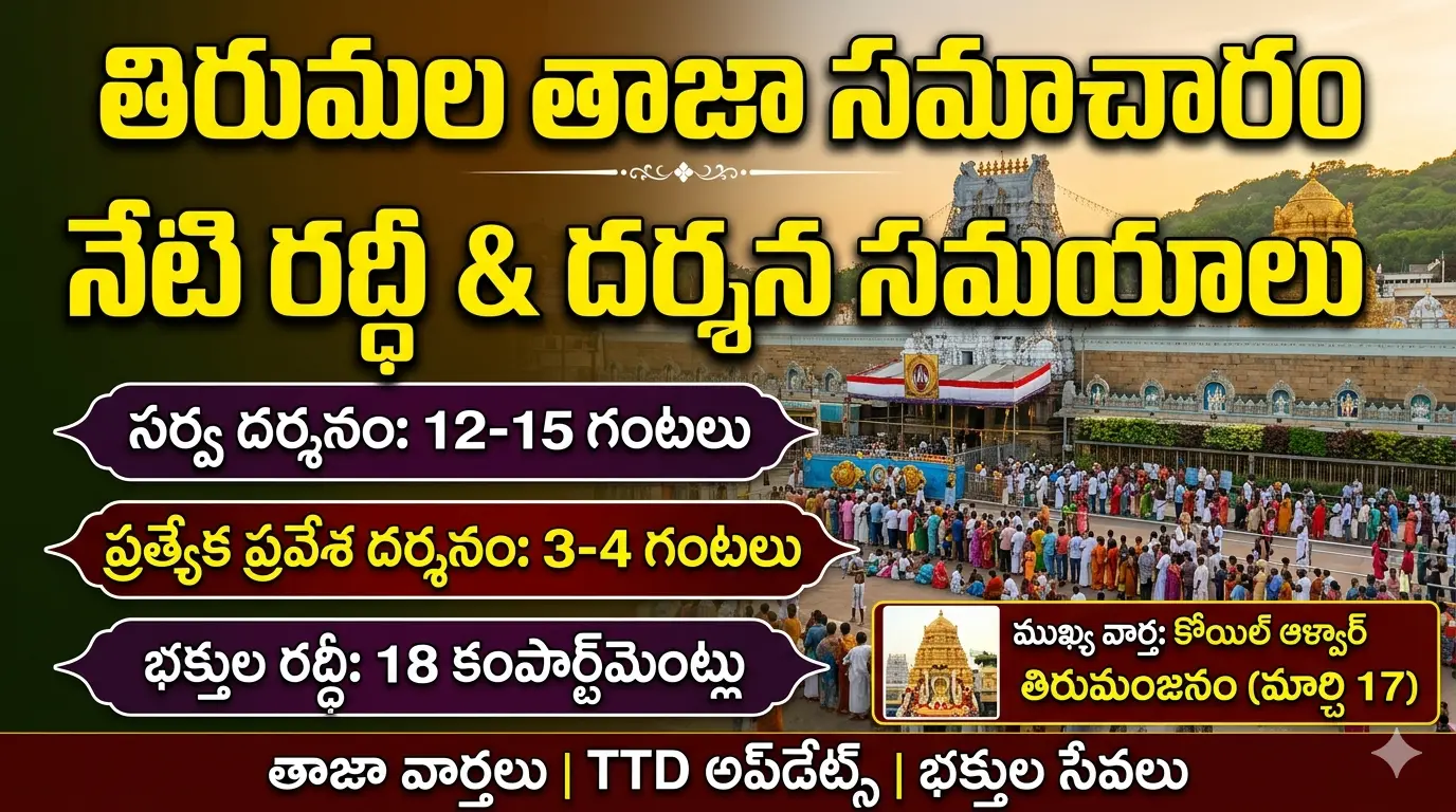 • ఉచిత దర్శనం (సర్వదర్శనం): టోకెన్లు లేని భక్తులు కేవలం 07 కంపార్ట్‌మెంట్లలో మాత్రమే వేచి ఉన్నారు. వీరికి స్వామివారి దర్శనం కలగడానికి సుమారు 06 గంటల సమయం పడుతోంది.